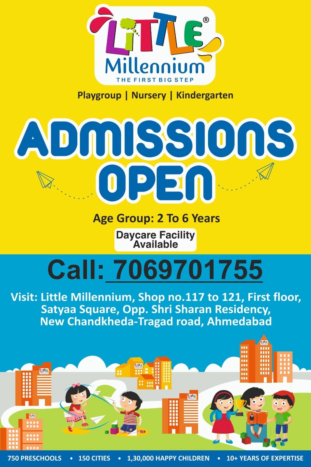 - •Little Millennium Chandkheda is a neighbourhood preschool offering playgroup, nursery, and kindergarten programs in a compact, well-decorated indoor setting.