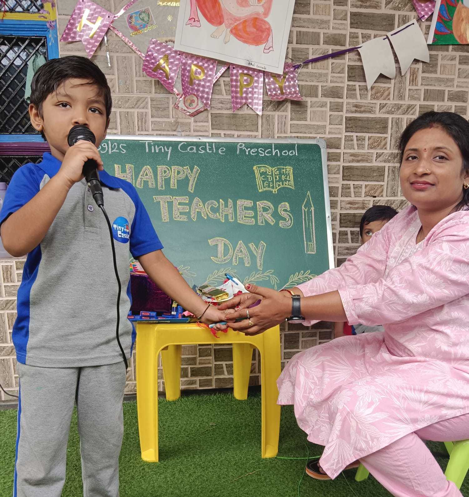 "Tiny Castle Pre School is a great place for kids! They have many fun facilities. The play area is big and safe. There are colorful toys and games."